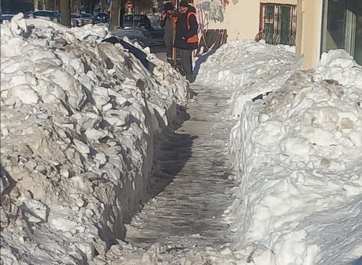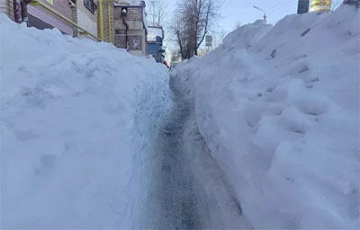 Читательница Тульской службы новостей пожаловалась на расчистку тротуара на улице Фридриха Энгельса недалеко от пересечения с улицей Пушкинской. На одном из участков образовалась настоящая гора, в которой вынужденно проложили тропу пешеходы.