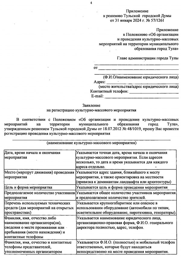 - заявление не будет согласовано с полицией и Общественным советом при Министерстве культуры Тульской области;