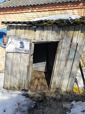 Крыша навеса прогнила и держится на входной железной двери, из-за чего сама дверь открывается всего на 30 сантиметров, пройти могут только самые стройные.