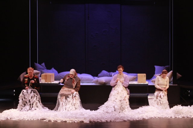 Участвуют в этом проекте неравнодушные женщины, которые на добровольной основе, без оплаты своего труда все это делают. Говорят, что их цель через свои изделия передать ребятам на передовую тепло женских рук, любовь, веру в них и веру в Победу. Они у себя на странице выкладывают информацию о своей работе. А у меня в друзьях в соцсетях одна из женщин этого коллектива. Поэтому какой-то текст в спектакле – конкретно про них. Кстати, на первых спектаклях присутствуют представители различных волонтерских организаций, которые делают для фронта маскировочные сети, теплые вещи, окопные свечи, сублимированные супы и многое другое.