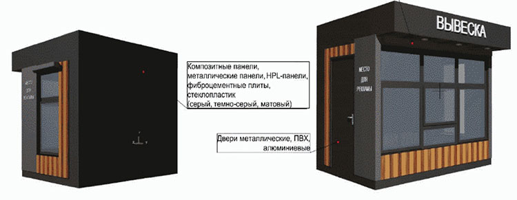В документе досконально прописаны размеры киосков, их цвет, расположение окон и дверей, а также отделочные материалы, которые рекомендуется использовать.
