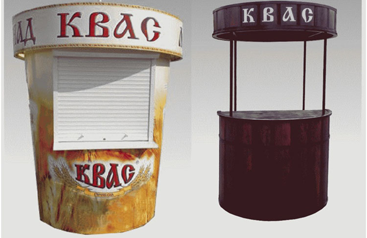 Торговые стаканы с квасом и другими напитками будут красить в серый или коричневый цвет. Обшивка и кровля будут сделаны из гладких оцинкованных листов.