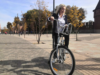 На фото: Ольга Слюсарева лично продвигает велопрокат (в Туле провалившийся проект называли мудрено — велошеринг)