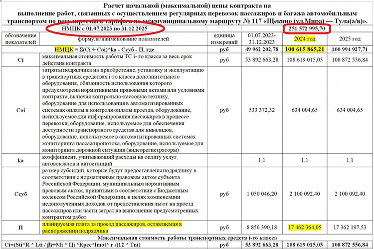 Из документов следует, что конкретно за 2024 год областной бюджет готов потратить чуть более 100 млн рублей для оплаты услуг перевозчика по маршруту №117. Вот как рассчитана данная сумма: