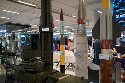 Одна из главных новинок салона — ракеты ближнего перехвата ТКБ-10-55 для борьбы с дронами зенитного ракетно-артиллерийского комплекса (ЗРАК) морского базирования «Панцирь-М». Для стрельбы этими боеприпасами на ЗРАК устанавливается переходный блок, который позволяет вместо одной штатной ракеты разместить четыре меньшего размера. В итоге боевой комплект комплекса можно увеличить с 12 до до 48 зенитных боеприпасов. Новые ракеты могут использоваться и сухопутными модификациями «Панцирей».
