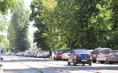 На Михеева проезжая часть вообще превратилась в одну большую парковку по обоим сторонам.А движение осуществляется только по трамвайным путям.