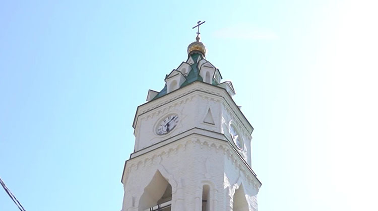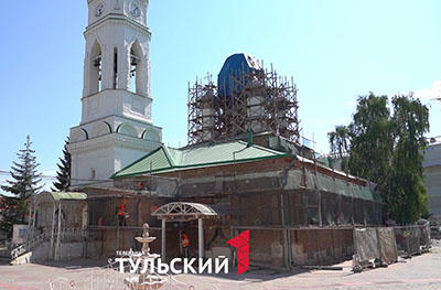 И еще из необычного — вот эти часы. Есть несколько версий, когда и кто их изготовил. По одной – мастера тульского оружейного завода как раз к открытию каменной церкви. По другой — что это новодел, а оригинал же бесследно пропал в 90-ые. Но в любом случае часы на Благовещенской церкви – были первыми уличными в губернии. Они и сейчас в рабочем состоянии. В таком же – скоро будет и храм. Его реставрацию должны завершить к концу следующего года.