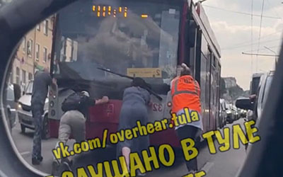 В Туле женщины помогли толкать обесточенный троллейбус. Кадры с места событий появились в социальных сетях.