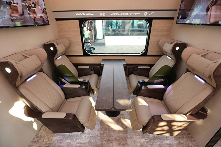 Врезка «Ведомостей»: На выставке «Станция Манеж. Московский транспорт 2030» 30 августа был представлен макет головного вагона высокоскоростного поезда для будущей ВСМ между Москвой и Санкт-Петербургом.