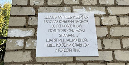 «Здесь в 1991 году родился Ярослав Юрьевич Дронов, более известный под псевдонимом SHAMAN: Шаляпин наших дней, певец России славной и гордый лик», — написано на табличке.