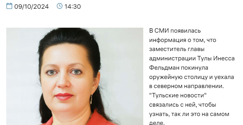 По имеющейся у нас информации, бывшая заместитель главы Администрации города Тулы по социальной политике Инесса Фельдман уезжает в Вологодскую область, что бы занять там пост министра областного правительства.