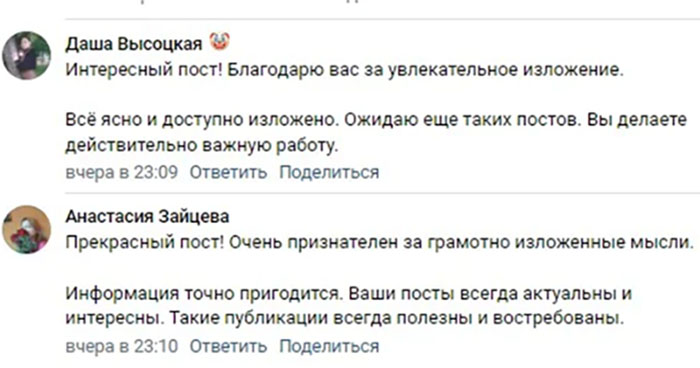 Читатели «Тульской прессы» заметили интересную активность под постами официальной странички правительства Тульской области во «Вконтакте». Комментариев там всегда много: они разные по наполнению и содержанию. Туляки порой не скупятся на эмоции, печатая жалобы. Однако вчера тон комментариев поменялся. Под постами неожиданно появилось много почти одинаковых откликов. Начинаются они с фразы «Захватывающий пост!» или «Полезный пост!», а в завершение «комментаторы» просят публиковать больше подобной информации.
