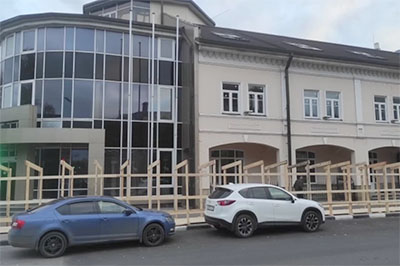 На углу улиц Менделеевская и Тургеневская в центре Тулы сооружён временный крытый пешеходный переход на период ремонта здания административного назначения. Госконтракт «Одновременное выполнение работ по подготовке (корректировке) проектной документации и выполнение работ по капитальному ремонту здания» на сумму 250 млн рублей был заключён весной этого года, заказчиком выступает госучреждение Тульской области «Сервис», учредителем которого является управление делами аппарата правительства региона.