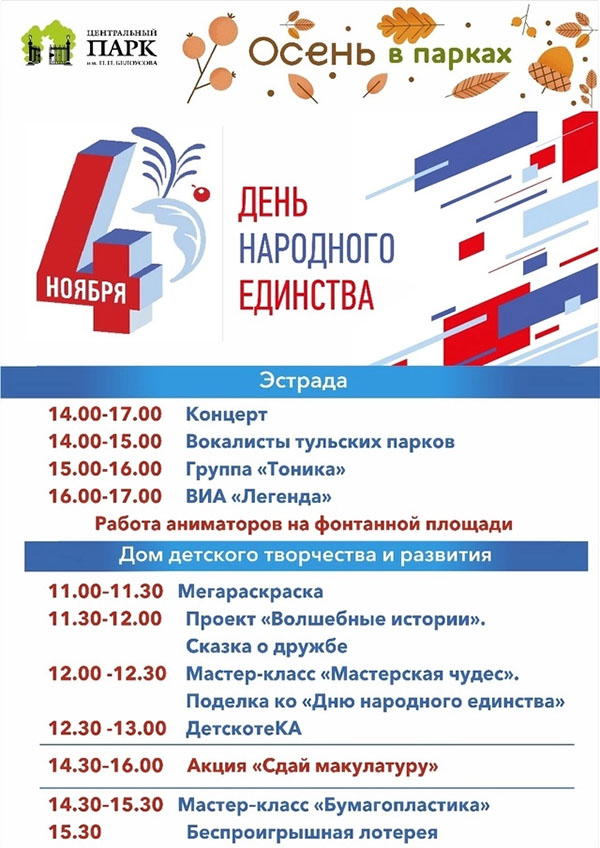 В Центральном парке Тулы 4 ноября отпразднуют День народного единства.