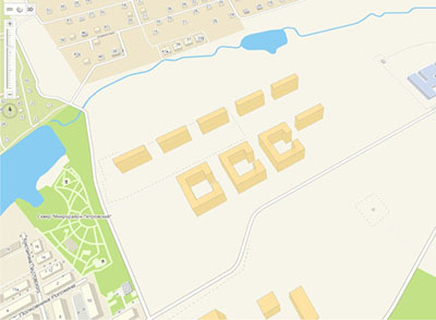 Это строится перспективный микрорайон в районе Петровского пруда. Т.е. это дома которые будут там построены, поэтому они в ГИСе пока обозначены жовтеньким.