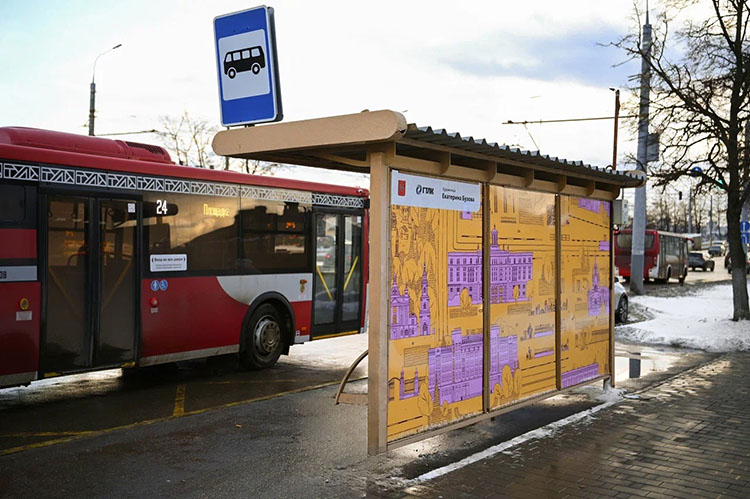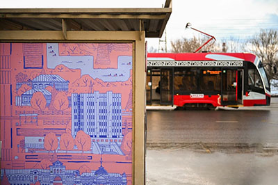 Остановки «разрисовала» Екатерина Бузова. В своих иллюстрациях она отразила уникальность городской культуры, архитектуры и достопримечательностей, а также смогла сделать отсылки к местным традициям и разместить информацию о маршрутах транспорта.