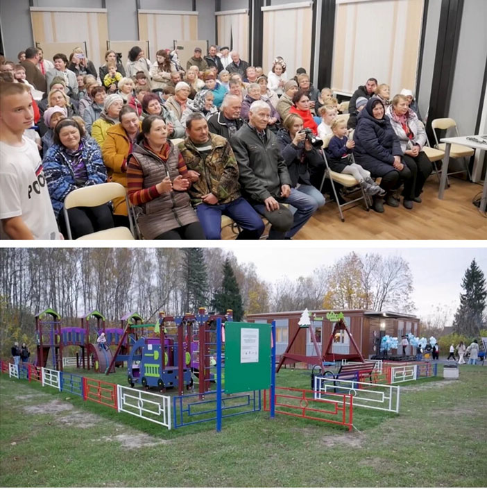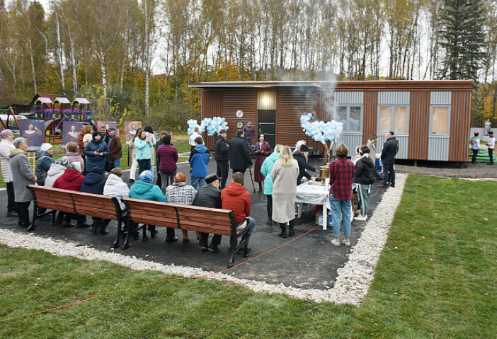 На фото: Торжественное мероприятие по случаю открытия модульного Дома культуры — трансформера в Белевском районе Тульской области.