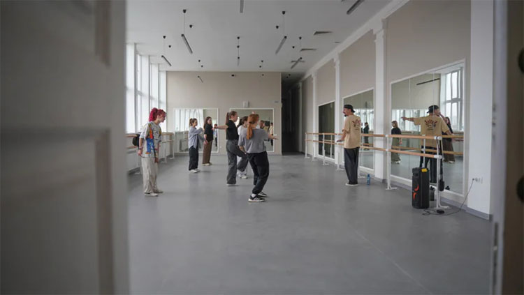 Проезжая мимо, решили заскочить, расспросить. На фасаде шли ремонтные работы, мыли окна. Попытались зайти — к нам вышла сотрудница. Спрашиваем, как записаться на те танцы, что показывали в СМИ? Женщина ответила, что ничего такого нет: «Ремонт идет». Здание закрыто, учреждение там не работает. Когда откроется — неизвестно.