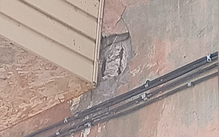 «Уже с 2023 года у начали обваливаться пороги, в них стали появляться дыры, перила покрылись трещинами – буквально по камням это всё распадается. Фасад дома у нас, как я это называю, — «обнять и плакать». Он выглядит просто ужасно. Там множество трещин, сырость всё делает ещё хуже», — рассказывает Мария.