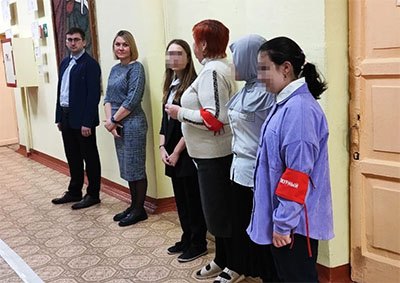 На одном из фото, выложенном в аккаунте учебного заведения МБОУ ЦО №29 в соцсети, девочка-подросток вместе с другими ученицами стоит в покрывающем голову и плечи платке рядом с директором ЦО Ильёй Кошкиным, заместителем директора по воспитательной работе Ольгой Киселёвой и учителем музыки и географии Надеждой Звычайной.