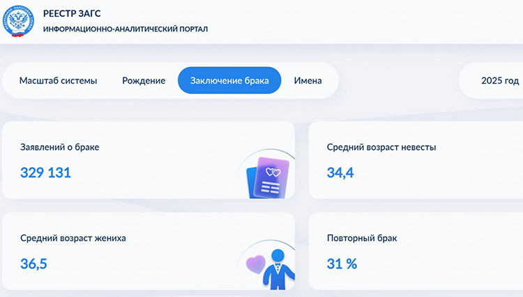 И в последние годы ситуация не поменялась: за 2024 год средний возраст женихов – 34,6 года, а невест – 32,5 года. С начала 2025 года аналогичная разница: