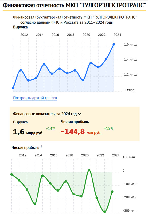 Насколько мне известно, «Тулгорэлектротранс» до сих пор занимает арендованные площади бывшей автоколонны 1809, принадлежащие ныне законному мужу одной из сторон сделки по мене стадиона на депо. И до сих пор платит за пользование ими арендную плату. В том числе и благодаря этому убытки предприятия при выручке в 1,6 миллиард рублей составили 144,8 миллиона.