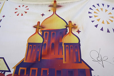 «Церковь нарисована стилизованная. И кресты крупные — стилизованные, отражают волнение людей по поводу небрежного отношения к православной вере. Так что все в норме. Этот баннер теперь тоже часть истории, его сохранить надо будет», — отметил прохожий, представившийся Павлом Матвеевичем.