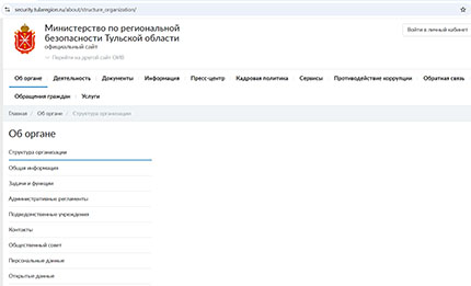 На странице министерства по региональной безопасности в составе портала органов исполнительной власти Тульской области минимизировали информацию о сотрудниках.