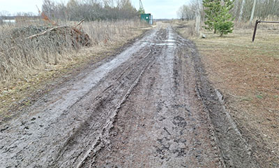С 2021 года районные власти, говорят люди, обещают построить дорогу с твёрдым покрытием — от жилых домов до контейнерной и пожарной площадки. Все проектные параметры известны: 425 метров длины, щебёночное покрытие, соблюдение норм по ширине и подушке. Но дальше обещаний дело не пошло.