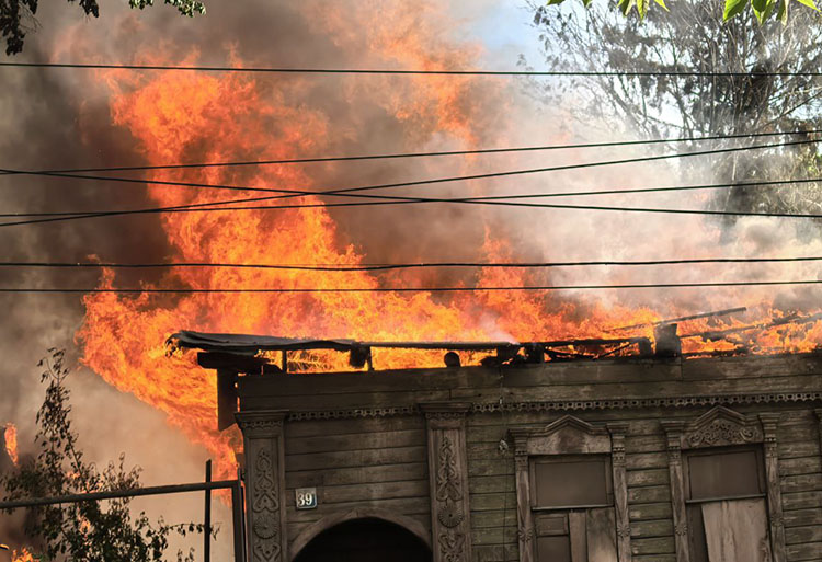 Как стало известно Myslo, сначала загорелся дом № 39, затем огонь перекинулся на соседнее здание. Причины возгорания предстоит установить специалистам.