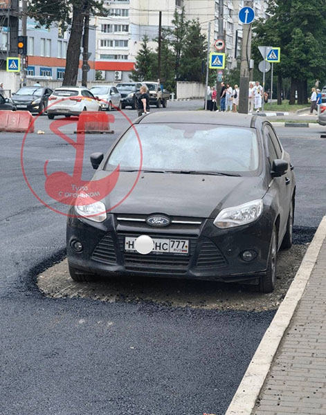 Замена асфальтового покрытия на улице Марата в Туле завершилась на этой неделе. Новое покрытие появилось на всем участке от ул. Плеханова до Ложевой, кроме одного — на нем стоял припаркованный автомобиль.