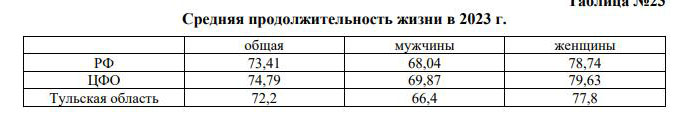 Продолжительность жизни в 2023 году осталась прежней у мужчин, тогда как у женщин немного повысилась (+0,72 года); общий средний показатель продолжительности жизни составляет 72,2 года.
