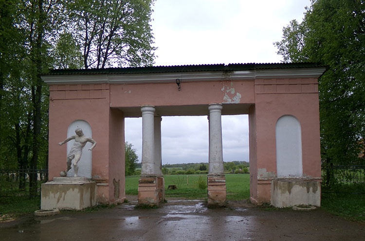 У входа на стадион сохранилась фигура футболиста. Судя по всему, в былые времена справа у него была пара.