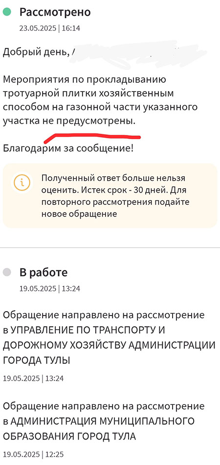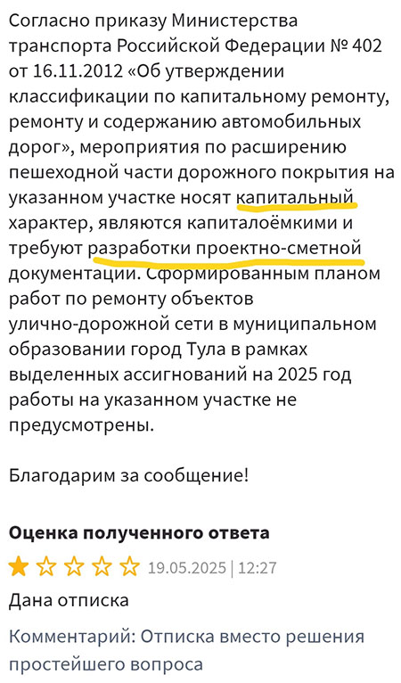 В Управлении по транспорту и дорожному хозяйству Тулы работают только специалисты! Специалисты по изобретению отмазок на обращения туляков.