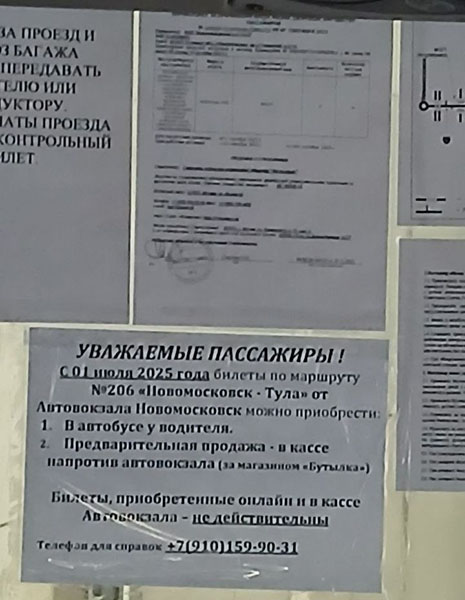 Известно, что «Новомосковская АК 1411» открыла свою кассу рядом с автовокзалом за несколько недель до отказа принимать талоны, купленные через посредника. Пассажиров информировали об изменениях с помощью объявлений в автобусах.