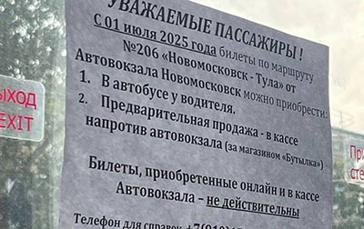 Известно, что «Новомосковская АК 1411» открыла свою кассу рядом с автовокзалом за несколько недель до отказа принимать талоны, купленные через посредника. Пассажиров информировали об изменениях с помощью объявлений в автобусах.