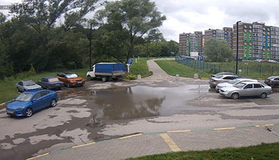 По ее мнению, причина кроется в просадке асфальта и неправильном расположении парковочного кармана и, соответственно, затрудненном попадании воды в предусмотренные проектом ливневки:
