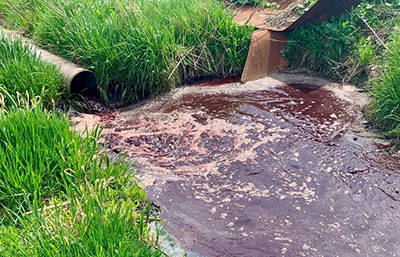 Экологи из организации ТРО «Экологическая защита», отозвавшиеся на проблему, приехав на место, обнаружили искусственную траншею, по которой кровавые стоки из труб от местного мясокомбината «Тульский поставщик» попадали в пруд.