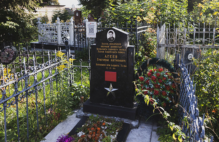 Много на Всехсвятском кладбище и могил героев Великой Отечественной войны. Около храма — ухоженная могила первого комиссара Тульского рабочего полка, героя Советского Союза Григория Агеева.
