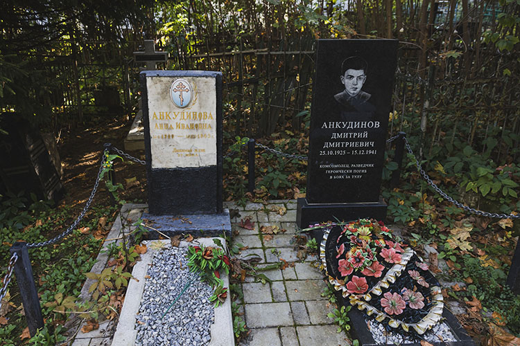 Дима Анкудинов погиб в 16 лет, его в декабре 1941 года расстреляли фашисты. В 1965 году к сыну подхоронили его маму, Анну Ивановну