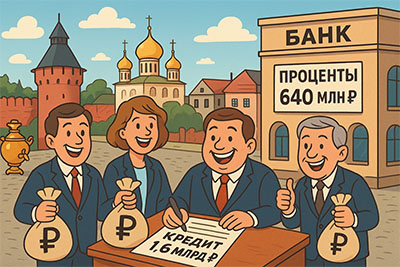 Из документов к проектам муниципальных контрактов следует, что власти Тулы собираются открыть две кредитные линии на 500 млн рублей, две линии 200 млн рублей, и еще две кредитных линии по 100 млн рублей. Только в виде процентов по ним будет выплачено 640 млн рублей в течение двух лет. Иными словам процентная ставка составит примерно 20% в год.