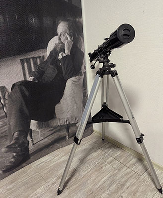 Из Калуги, специально на открытие выставки приехала правнучка Циолковского, Елена Алексеевна Тимошенкова. Хорошие слова сказала, пригласила в Музей космонавтики, где работает. Там, конечно, экспозиция пообширнее, побогаче, но у нас зато экспонаты можно руками потрогать. И в трубу подзорную старинную посмотреть, и в телескоп…