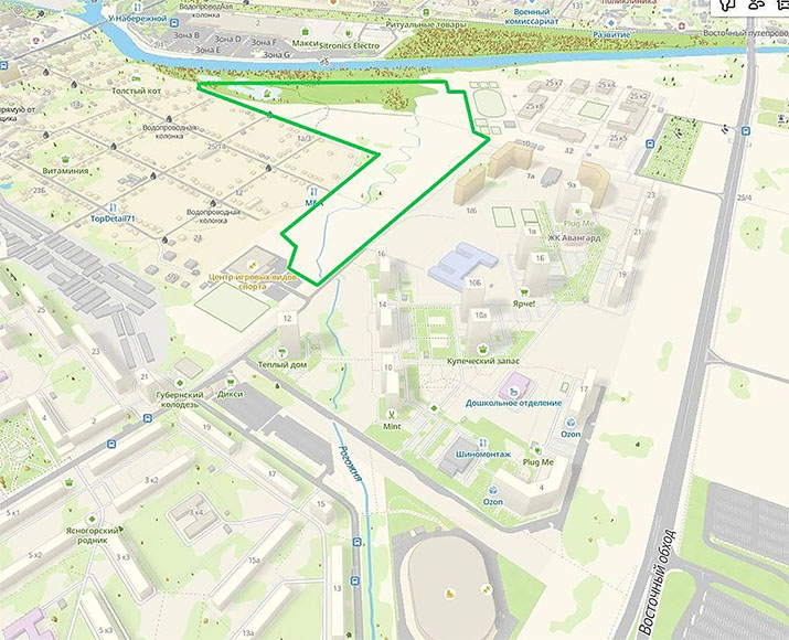 Зеленым отмечена зона застройки, источник иллюстрации Dmilyaev / T.me