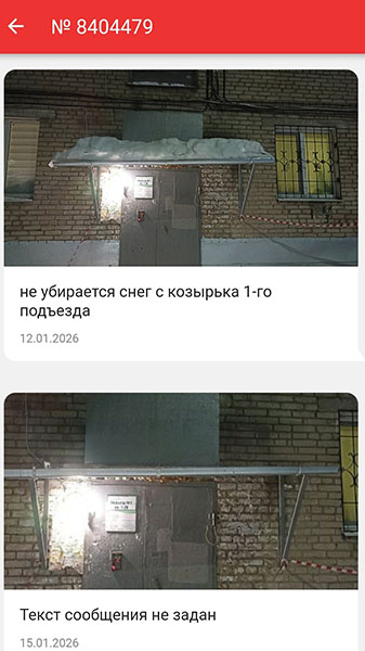 В ответ на просьбу убрать снег с козырька первого подъезда дома № 81 по ул. Гоголевской сотрудники компании просто стерли сугроб и приложили измененное фото, добавив, что заявка выполнена.