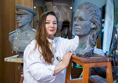 – Много кем мечтала стать. Выпускница Тульской художественной школы имени В. Д. Поленова, я потом училась в художественном училище в Орле и в этом же городе окончила институт. При этом никогда не думала, что стану скульптором. Тем более что скульптурой я занималась только на уроках в художественной школе, да и те, к сожалению, часто пропускала. В профессию меня привела керамика. По окончании института я получила предложение от одной из компаний слепить черепаху длиной сантиметров 80. Что у меня из этого выйдет, я не знала, но за дело принялась. Черепашка получилась чудесная. И потом лет пять я делала керамические фигуры животных. Это не была академическая скульптура. Это были фигурки для украшения ландшафта. Вскоре мне захотелось делать собственные проекты – большие и серьезные. Мне хотелось устраивать выставки, рисовать картины, в том числе портреты, расписывать интерьеры… Причем не только на заказ. Мне хотелось делать то, что просит душа. Все это потихоньку привело к тому, что я поняла: хочу быть скульптором. Когда очень хочешь, сами знаете… А сейчас я мечтаю создать красивый парк со скульптурами, которые связывала бы или сюжетная линия, очень важная и для страны, и для нашего края, объединяющая события какой-то исторической эпохи, или большая личность, вокруг которой будут «выстроены» события. Иногда мой внутренний голос спрашивает меня: имеешь ли ты право делать то, что делаешь? Но мое желание заниматься скульптурой настолько велико, что тот же голос, рассеивая все сомнения, отвечает: хочешь – получается – иди дальше, только вперед. И я иду. И очень рада, что мои работы нравятся людям. Какая оценка может быть выше?