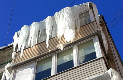 А наледь на козырьке образовалась от того, что на него затекает вода от снега , скопившегося на крыше…