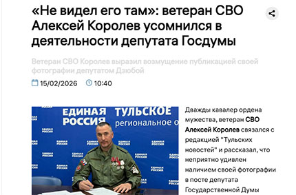 Дважды кавалер ордена мужества, ветеран СВО Алексей Королев связался с редакцией «Тульских новостей» и рассказал, что неприятно удивлен наличием своей фотографии в посте депутата Государственной Думы Виктора Дзюбы.