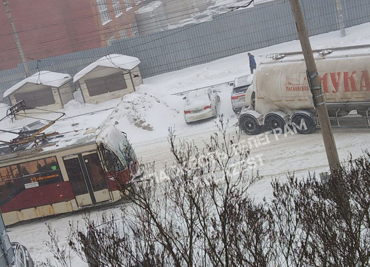 На Максима Горького муковоз не может тронуться с места. Фото: TK tula_anonimno