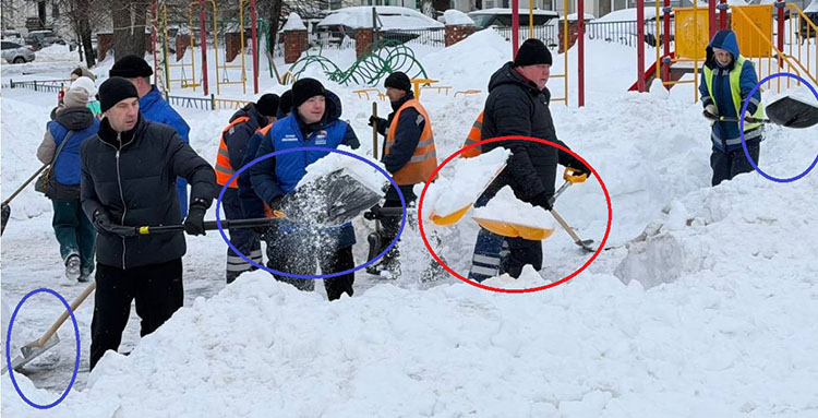 Ещё немного OSINT (анализа открытых источников). У чиновников и простых жителей отличаются даже лопаты для уборки снега. К чему бы это?