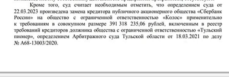 Чтобы вытеснить действующего арендатора, в конце 2023 г. была создана компания – двойник комбината, ООО «ТОМ» («Тепло-Огаревский мясокомбинат»). Она полностью копирует название ликвидированной компании, которая уже завершила процедуру банкротства, и имела такой же юридический адрес. Видимо целью было ввести в заблуждение потребителей в случае захвата предприятия. Однако пока попытки расторгнуть договор аренды и заместить арендатора подконтрольным предприятием ООО «ТОМ» не увенчались успехом, закрытия комбината и увольнения около 200 сотрудников не произошло. В противном случае регион мог бы лишиться одной из своих лучших «визитных карточек» в сфере агропроизводства, а также налоговых отчислений в 100 млн руб. Об этом прямо говорится в определении арбитражного суда, вставшего на сторону арендаторов.